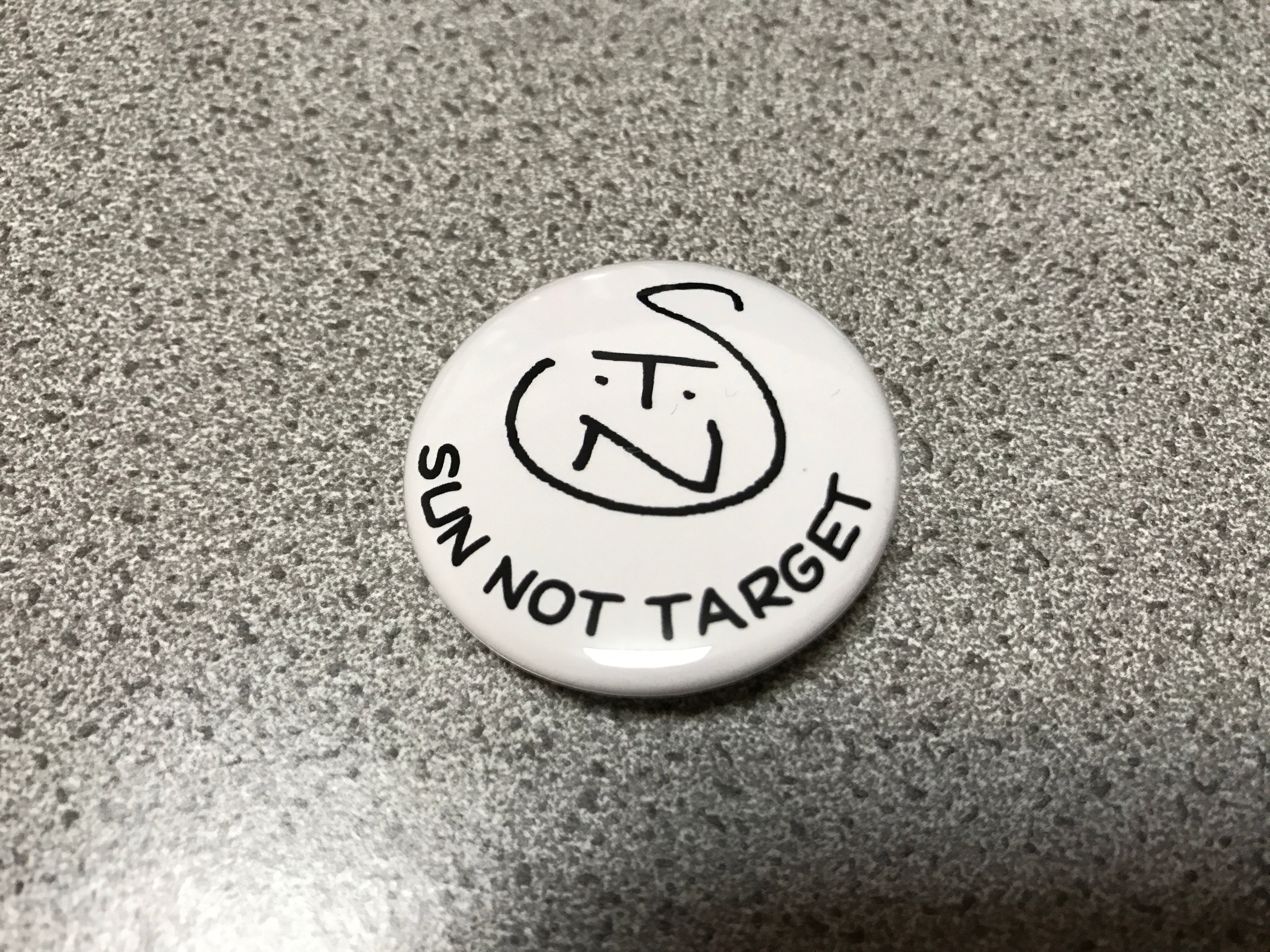 SUN NOT TARGETオフィシャルキャラクター・さんたくんの缶バッチです。 直径38mm! カバンにつけて持ち歩いてね。